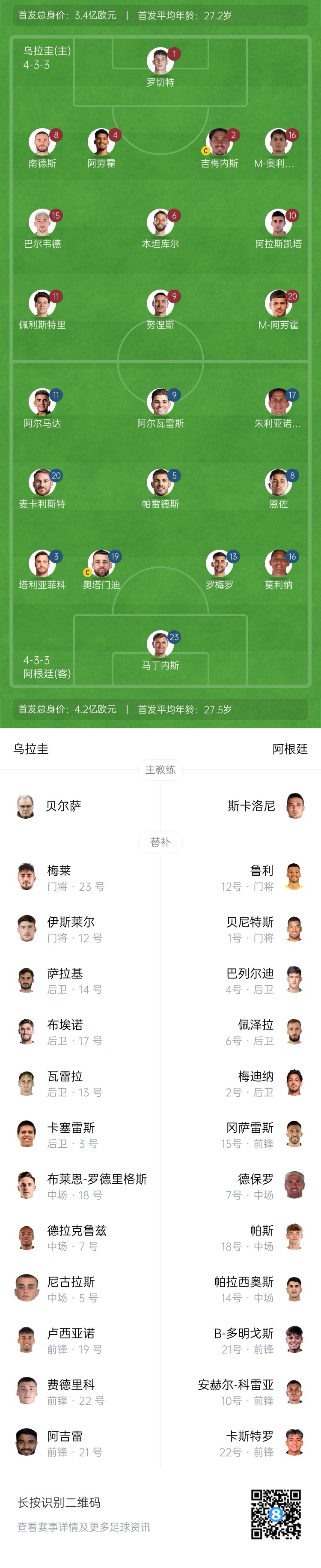 2025-03-22 11:25:50阿根廷vs乌拉圭首发:小蜘蛛PK努涅斯,巴尔韦德、恩佐先发