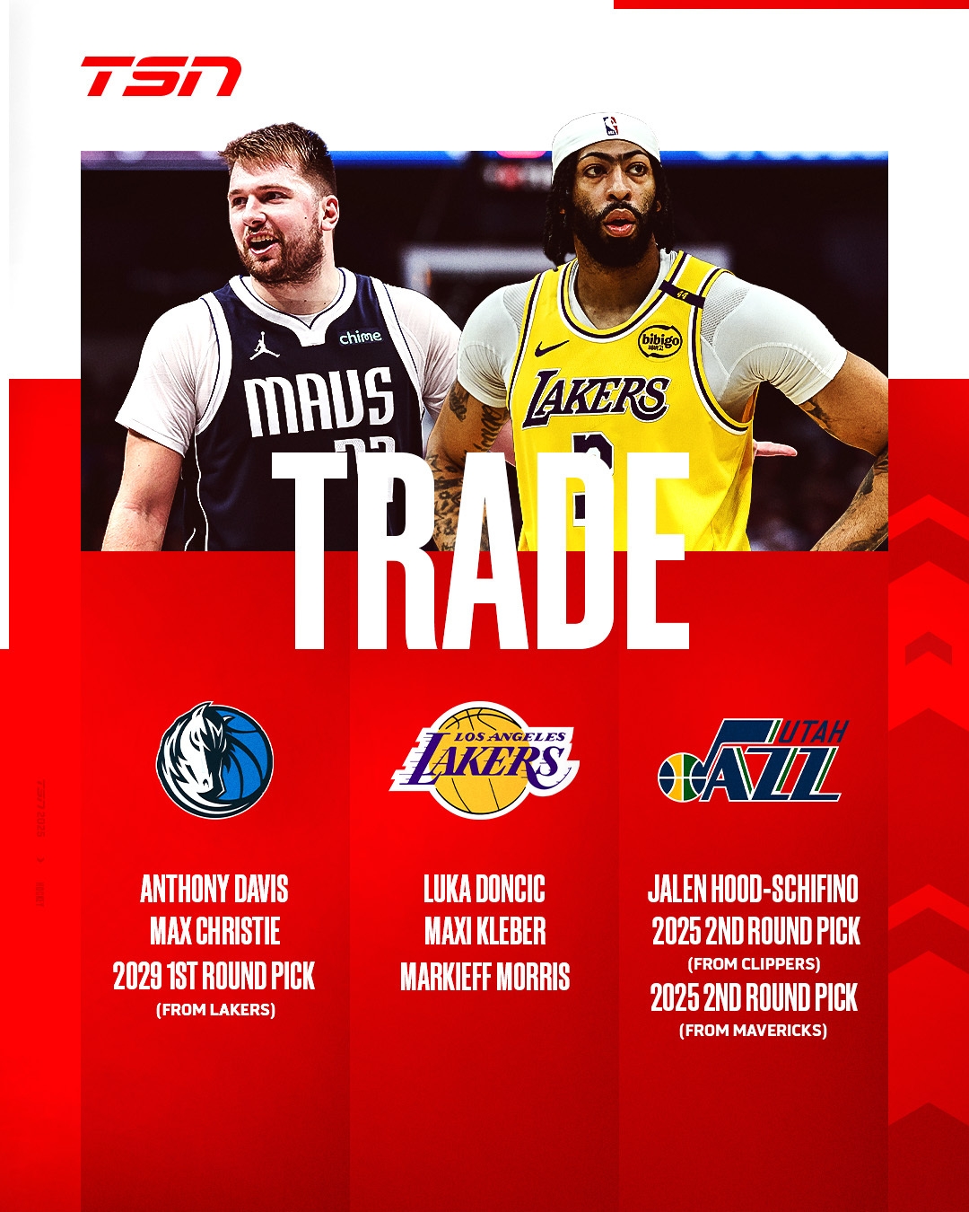 湖人收到:东契奇、克莱伯、马基夫-莫里斯、5.5万美元现金!