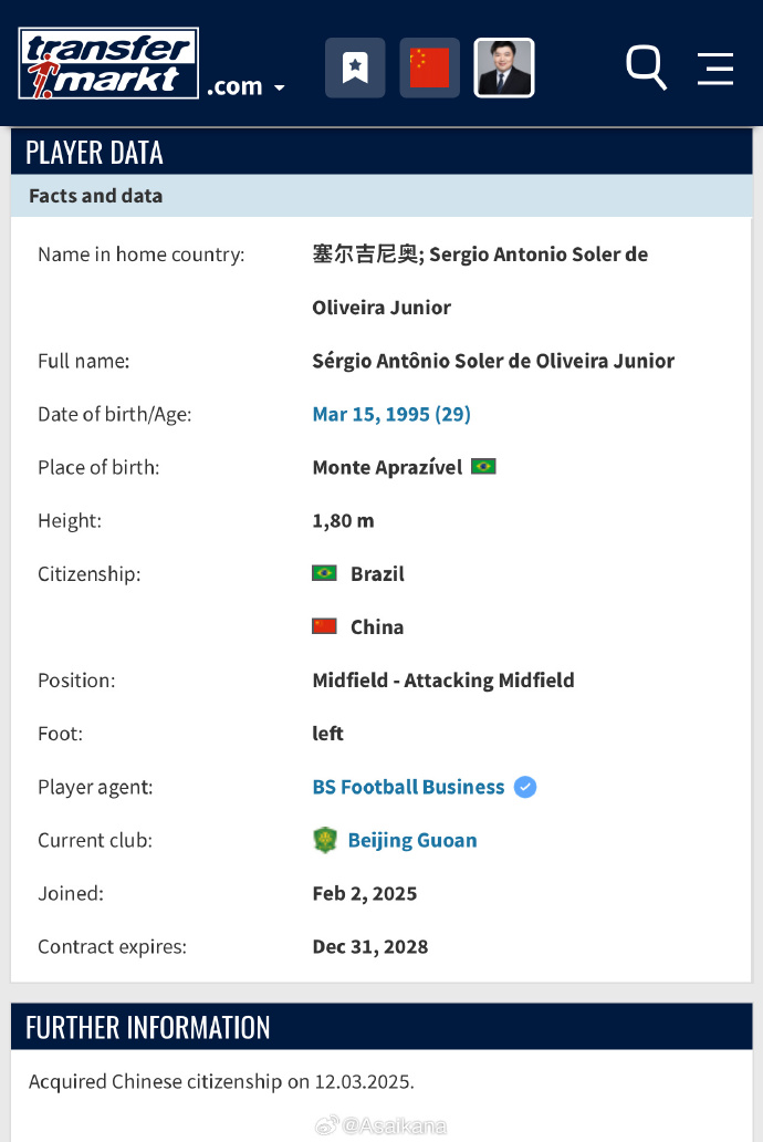 两年之后,塞尔吉尼奥离开了日本,加盟了长春亚泰。在这里,他跟俱乐部拿到了中甲冠军,成功升级。到2024年时他已经完成了亚泰百场里程碑,算是俱乐部的“名宿”了。因此,他对中国赛场也是格外的熟悉,不管是中甲、中超还是国家队、亚洲赛事,他都很明白。