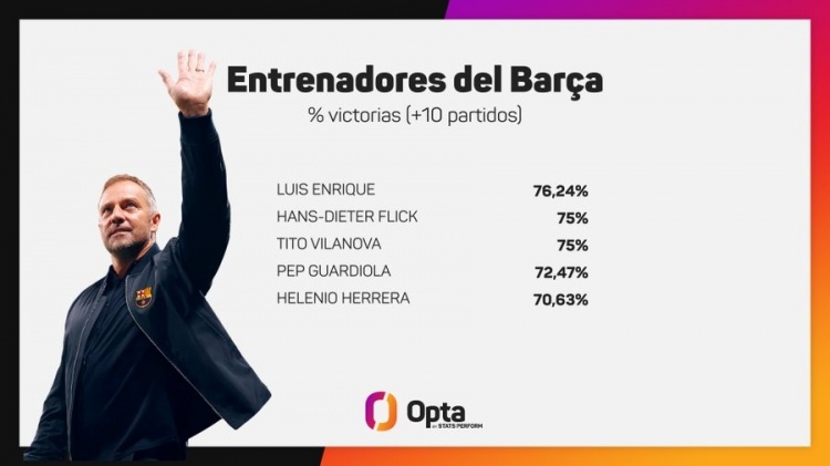 2025-03-28 07:48:32弗里克带队巴萨44场取33胜,胜率75%队史仅次恩里克