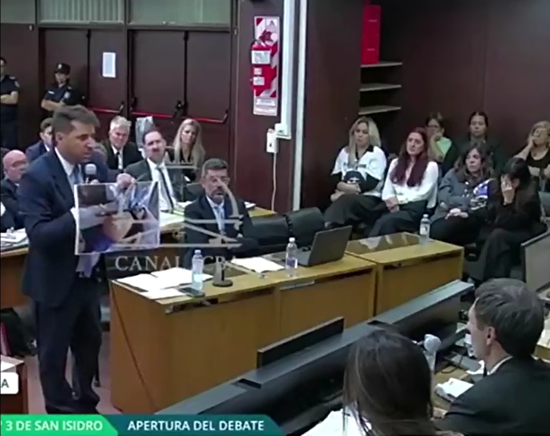 图为之前庭审中,检察官所举马拉多纳去世时的照片