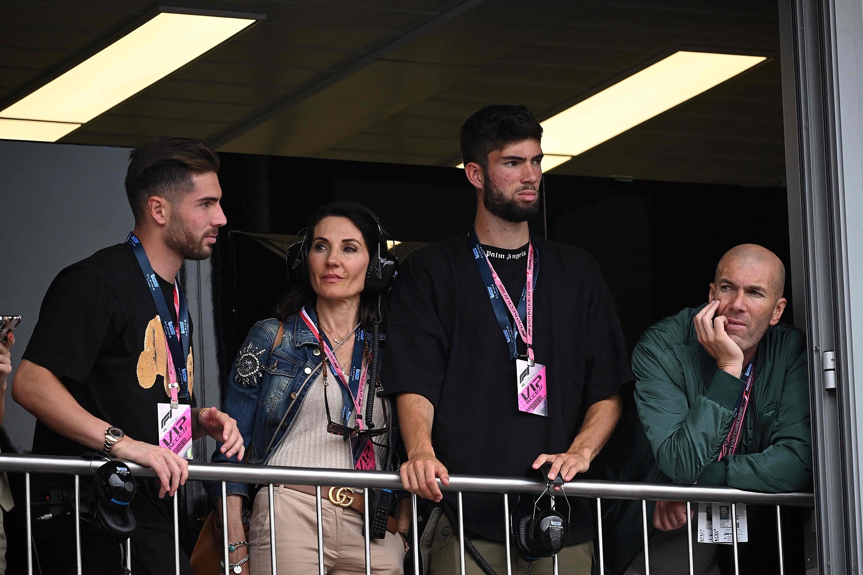 左起:卢卡-齐达内、齐达内妻子、恩佐齐达内、齐达内